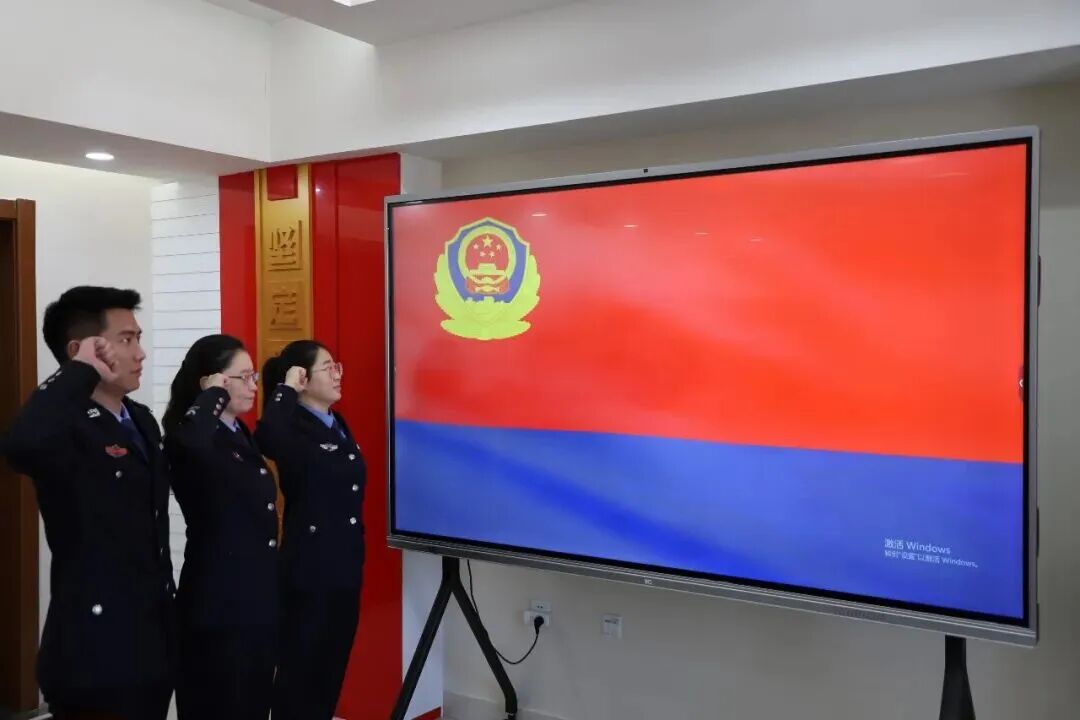 全体司法警察身着笔挺警服,警容严整、身姿挺拔,面向鲜艳的警旗庄严宣誓。“我是人民检察院司法警察,我宣誓:忠于中国共产党,忠于祖国,忠于人民,忠于宪法和法律;服从命令,听从指挥;严守纪律,保守秘密;秉公执法,清正廉洁;恪尽职守,不怕牺牲;全心全意为人民服务。我愿献身于崇高的检察事业,为实现自己的誓言而努力奋斗。”铮铮誓言,铿锵有力,彰显了镶黄旗人民检察院司法警察队伍对党绝对忠诚,对人民检察事业的无限热爱,对守护司法权威,护航新征程的坚定决心。